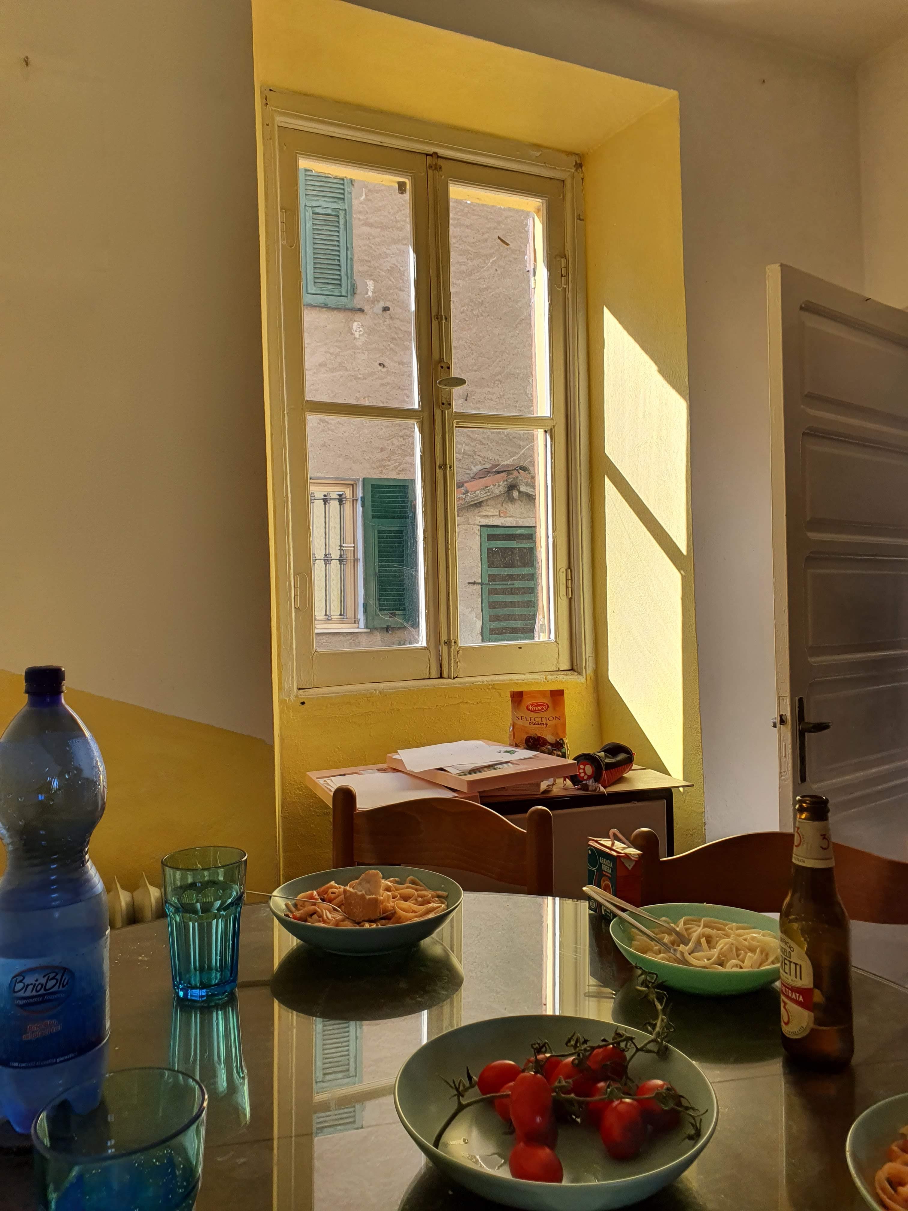 Siskon perheen saapuminen ei tapahtunut aivan aikataulussa. Meille pääsee Milano-Genova -moottoritieltä kahdesta eri liittymästä. Milanosta tultaessa ensimmäinen on Serravallen liittymä, johon Google Maps siskon perheen ohjasi. Sunnuntaisin kuitenkin toinen, Arquata Scrivian liittymä on parempi, koska italialaiset rakastavat passeggiataansa viikonloppuisin kauppakeskuksissa. Siskon perheellä oli siis mennyt pitkä tovi jonottaessaan pois moottoritieltä Serravallen ostoskeskuksen liittymässä koronasulun lieventymisen hullaannuttamien italialaisten jonossa.
