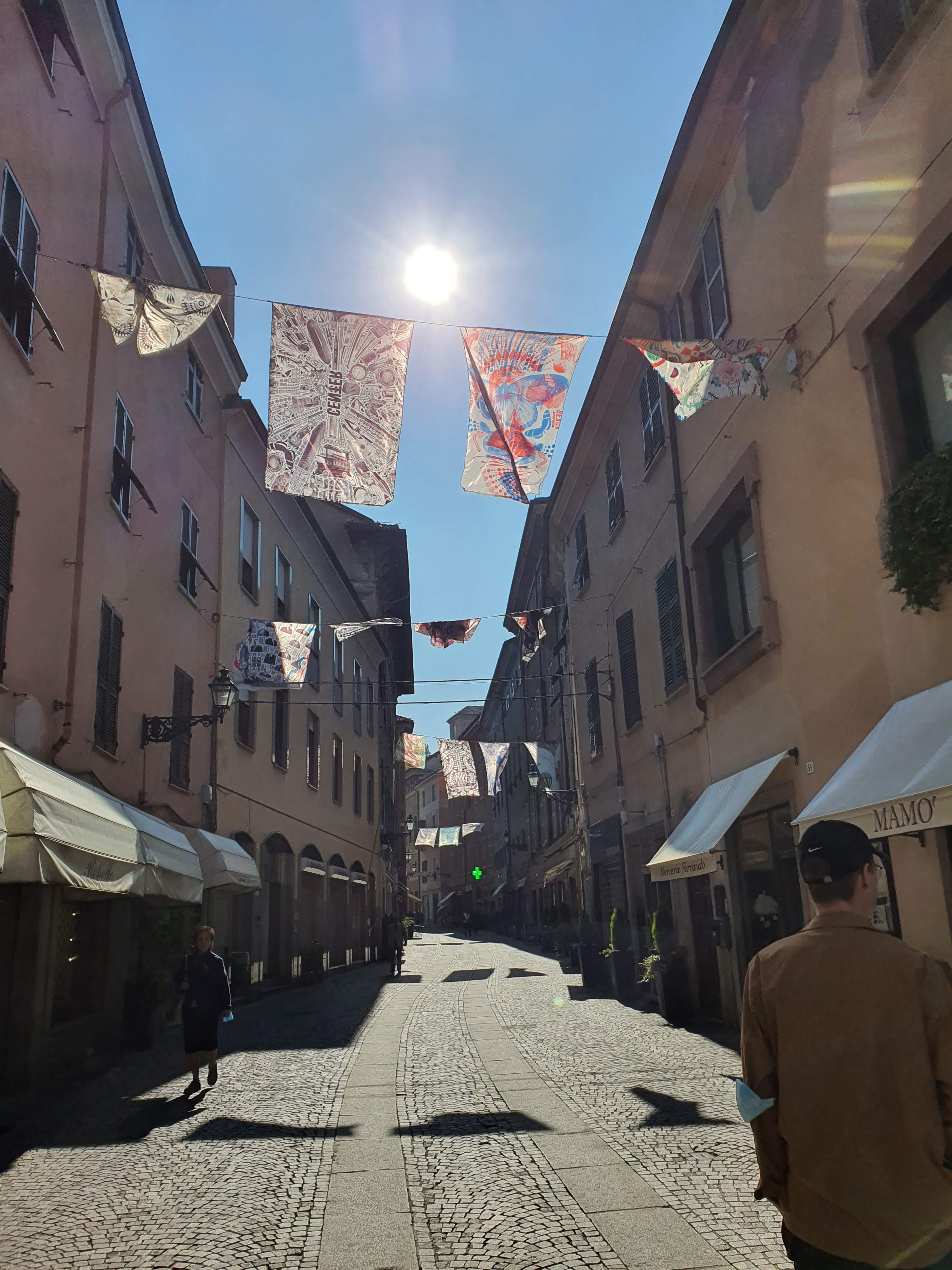 Pienen sänkyjen koontipuuhan jälkeen kävimme lounaan jälkeen hengähtämässä Novi Liguressa, jonka jälkeen palasimme kokoamaan vielä sohvan (pojat). Novi Liguressa oli alkamassa viikonlopun taidetapahtuma. Italian kaupungeissa ja jokaisessa pikku kylässä on jatkuvasti erilaisia yhteisiä tapahtumia. On historiallisia tapahtumia, jotka saattavat olla valtakunnallisia, tai liittyä juuri sen paikkakunnan historiaan. Näihin tapahtumiin kuuluu usein teeman mukainen pukeutuminen, esitykset sekä tietysti tarjottavat. On erityisesti jonkin paikallisen ruuan tai elintarvikkeen ympärille kehittyneet juhlat, joita pidetään vuosittain aina samaan aikaan. Bosiossa on ainakin kastanja- ja sienijuhla. Lisäksi ovat tietenkin kirkolliset juhlapäivät, joihin saattaa liittyä isojakin kulkueita sekä tietysti ruokaa. Novi Liguren juhlaviikonloppu ei oikeastaan ollu mikään näistä tyypillisistä italialaisista syistä kokoontua yhteen vaan tapahtumassa juhlistettiin (ehkä paikallisia?) taiteilijoita.