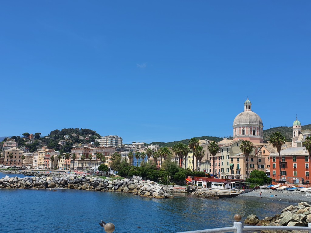 Lauantaina kävimme Rapallossa. Rannan lämpötila oli lähellä hellelukemia, mikä tuntui taivaalliselta. Vaikka olin tarkastanut lämpötilan etukäteen, oli syksyisessä Bosiossa vaikea uskoa oikeasti lämpöön, joten jätin nuorimmaisen uimapuvun talolle. Tästä sain kyllä perillä kuulla. Rapallo oli ihan viehättävä paikka, mutta aiemmin käydyn Portofinon jälkeen tiesin jo suunnilleen mitä oli odotettavissa. Sunnuntaina saapuisi sitten siskoni perhe talolle.