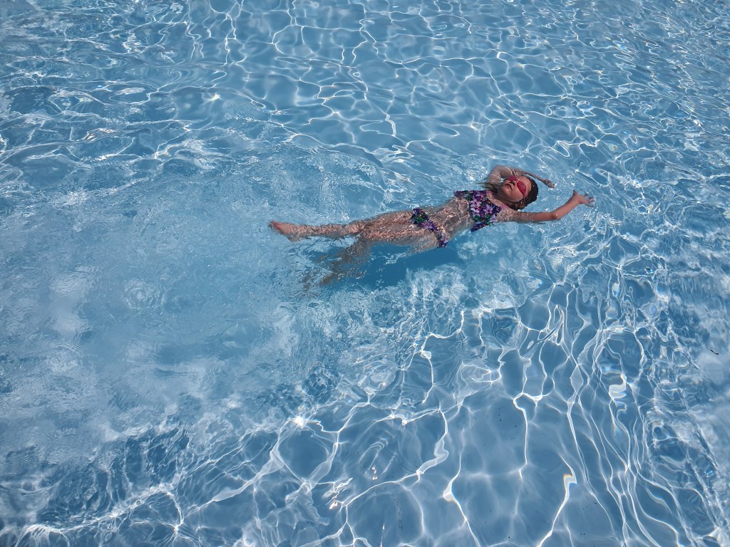 Päivät siis kuluivat töitä tehden, mutta olimme luvanneet nuorimmalle, että lauantaina pidämme vapaapäivän. Lähdimme Gavin maauimalaan. Vaikka oli kuuma lauantai, ei väkeä ollut liikaa. Suurin osa näytti tulleen paikalle koko päiväksi. Mekin venytimme oleskeluamme vähän aiottua pidemmälsi, sillä pienestä baarista sai lounasta ja auringonvarjon alla oli mukava loikoilla. Kuten tavallista, ainoa joka paloi, oli tummahiuksinen vanhin tyttäreni, jolla on myös selvästi tummempi iho kuin meillä kahdella vähän punapigmenttisellä. Ikävä kyllä olkapäät punoittivat vielä maanantaina lähdön hetkellä aloe vera-rasvauksista huolimatta.