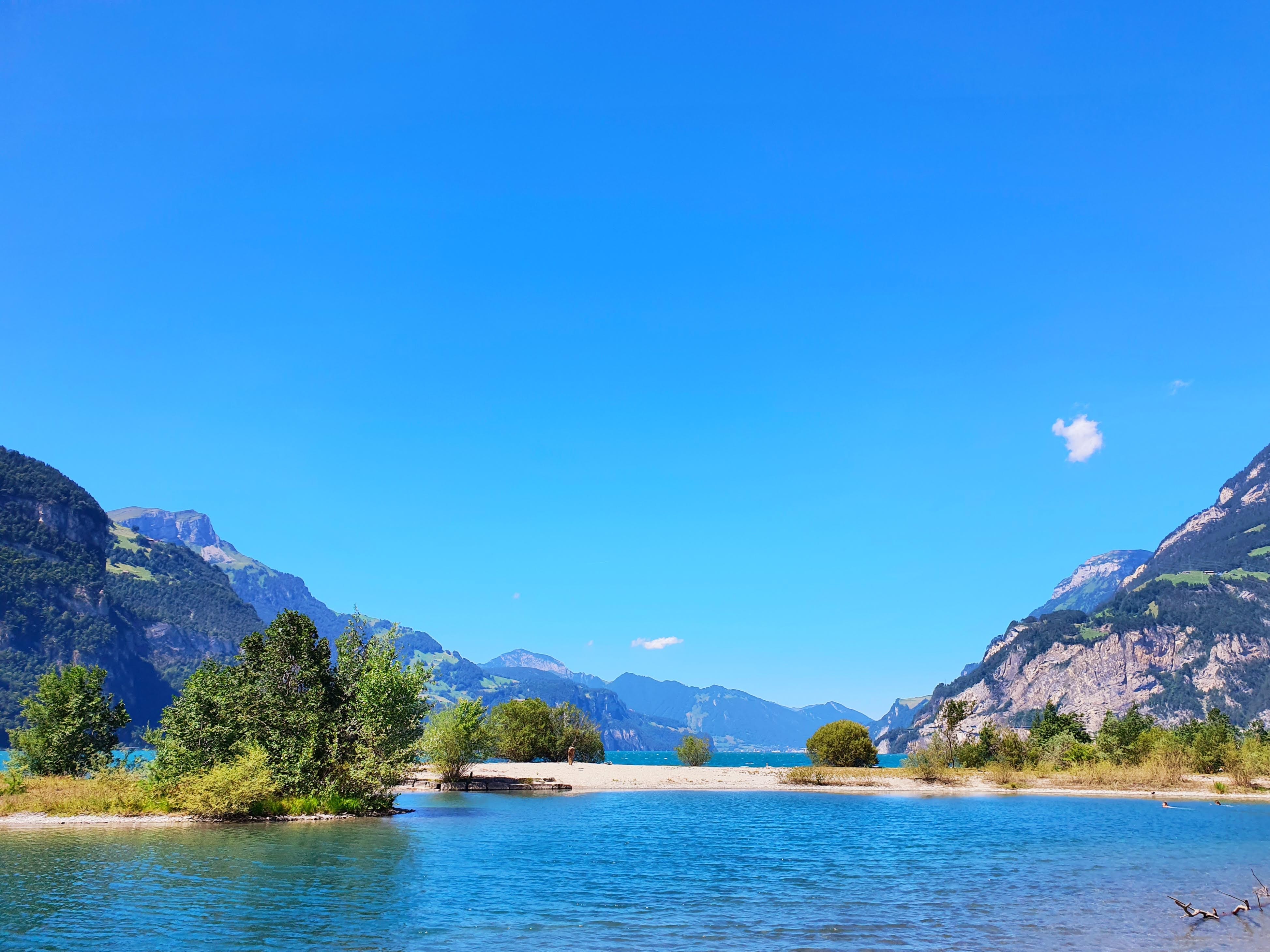 Kotimatkan alkupuolella pysähdyimme uimaan tuulisella järvellä Sveitsissä